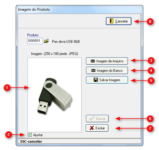 6) Gravar: Vincula a imagem selecionada ao produto.