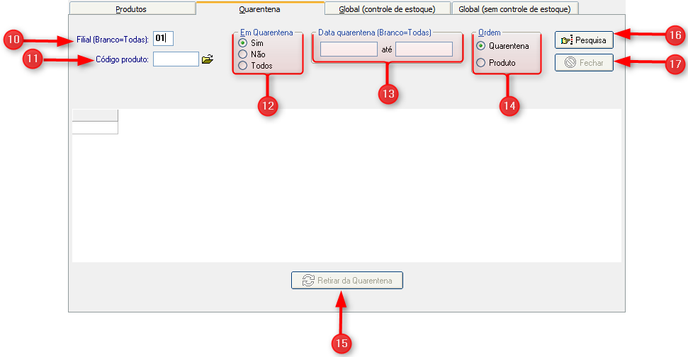 14) Ordem: Serve para ordenar por quarentena ou por produto.