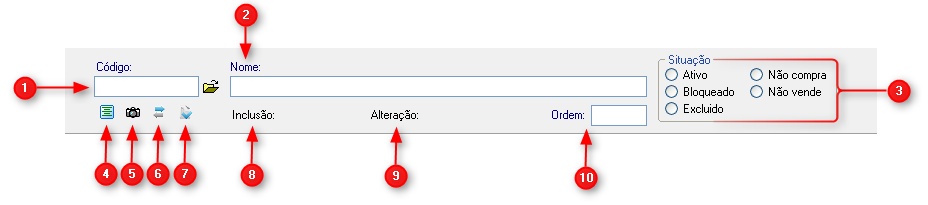 10) Ordem: Define a ordem do produto. Esta informação pode ser utilizada posteriormente no relatório de vendas por período e no relatório de produtos.